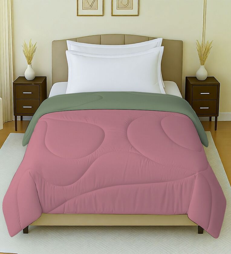 Green And Pink Cotton Reversible Single Bed Ac 150Gsm Comforter
