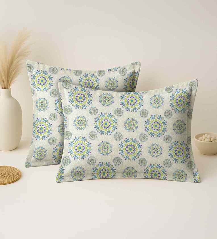Mayfair Homes London Green 2 Pieces Ornamental Pure Cotton Rectangle Pillow Covers are made from 100% pure cotton, offering a super soft, breathable, and hypoallergenic experience for everyday comfort. These elegant pillow covers showcase a refined ornamental design in a soothing green shade, adding a fresh and stylish touch to your bedroom d cor. PACKAGE CONTAINS: Set of 2 rectangular pillow covers crafted to fit most standard-size pillows, ensuring a smooth and secure fit. BEST SIZE FIT: Designed for standard rectangular pillows, these covers stay neatly in place, enhancing both functionality and aesthetics. FABRIC QUALITY: Made from high-quality, natural cotton, they are gentle on the skin, ideal for allergy-prone users, and maintain their softness over time. FEATURES: Durable, wrinkle-resistant, and breathable; these covers are machine washable, easy to maintain, and reusable without losing their shape or color. USAGE: Perfect for bedrooms, guest rooms, or decorative settings, these covers combine comfort and elegance, uplifting the overall ambiance of your living space.