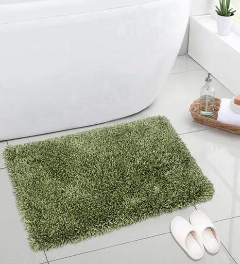 Green Cotton Anti Skid Solid 31 x 20 inch Door Mat