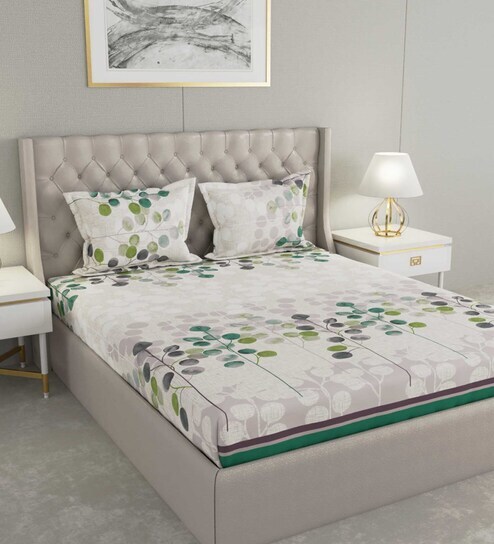 White Floral 144 TC Cotton 1 Double King Size Bedsheet with 2 Pillow Covers