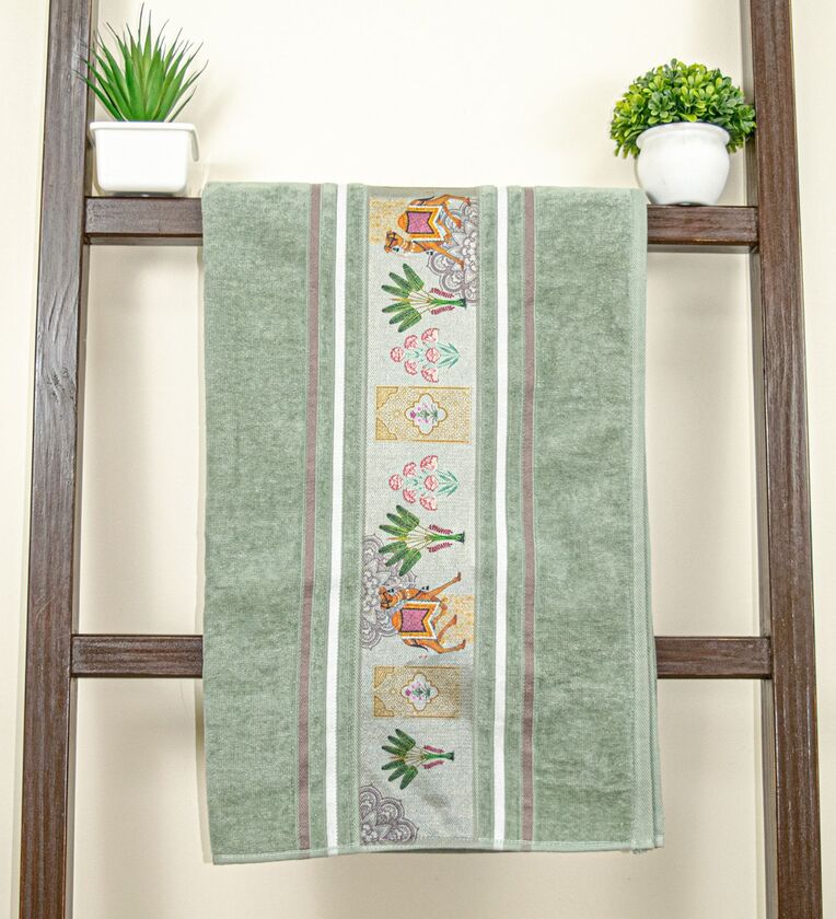 Green Cotton Printed 460 GSM Bath Towel (1Pc)
