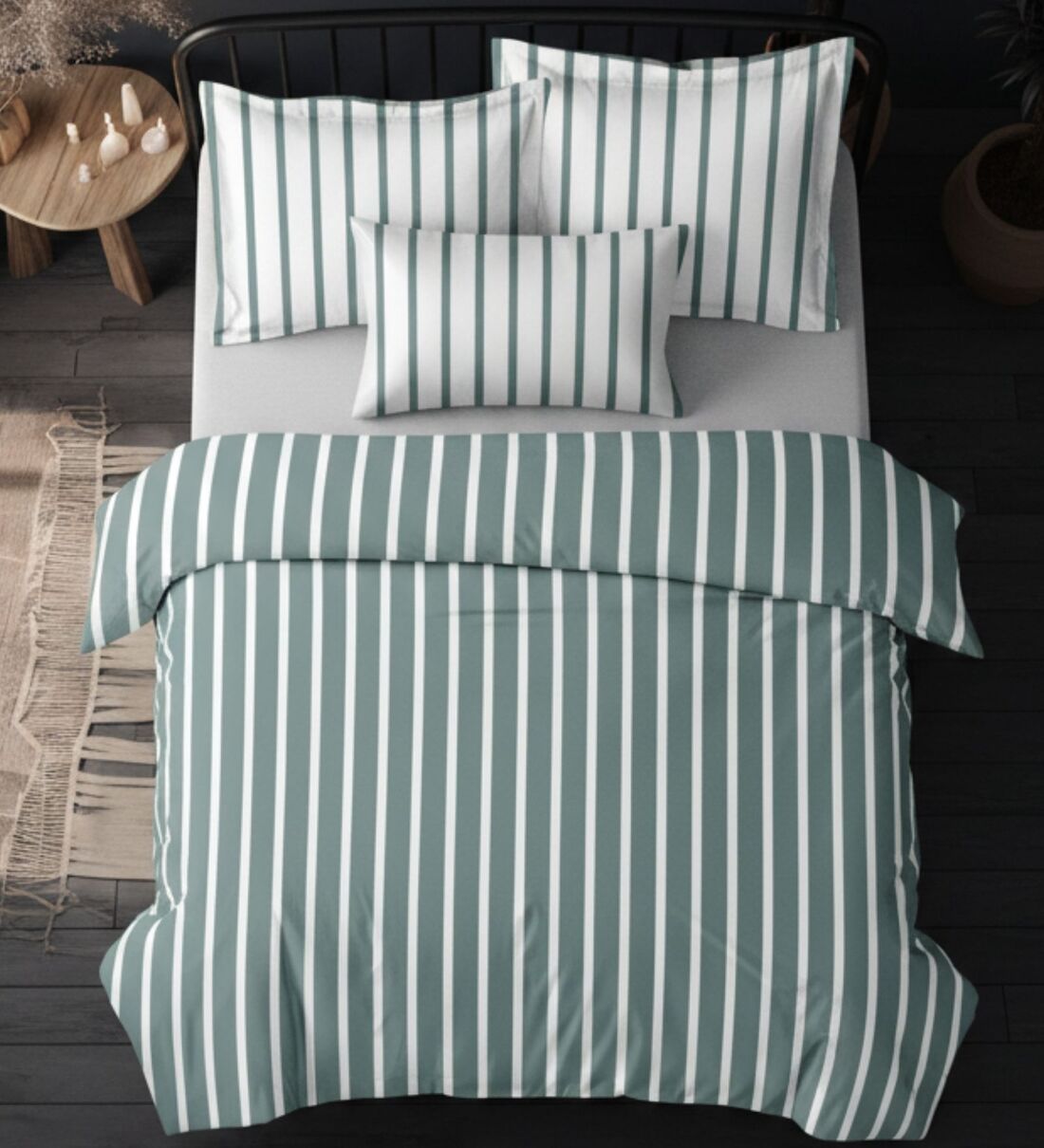 Green Cotton Pritned 300TC Super King Bedsheet with 2 Coordinate Pillow Covers