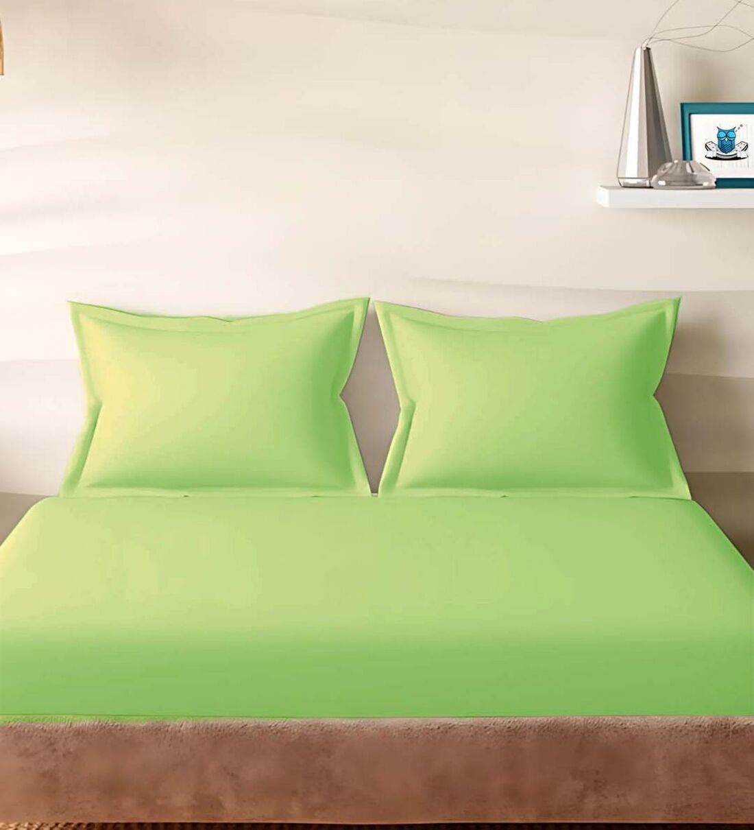 Green Cotton Solid 210TC Plain Super King Bedsheet with 2 Pillow Covers