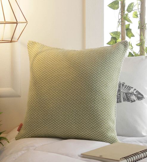 Solid Pattern Cotton Green Cushion Cover 16 x 16 inches