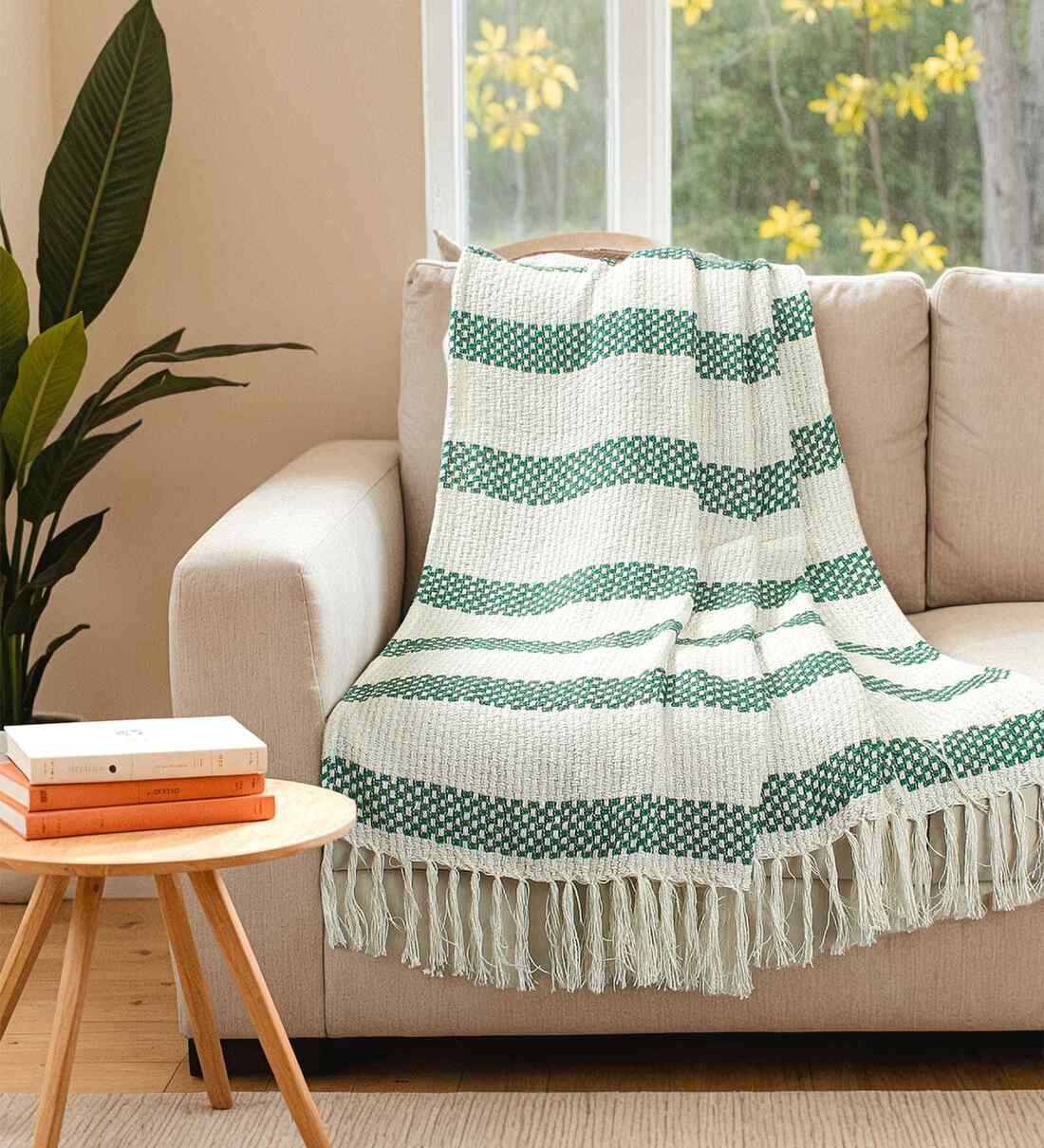A winter home essential that you can't do without! Made of 100% cotton to be extra soft, durable and keep you comfortable irrespective of the season. Features a deep fringed border to be extra edgy. Use it to snuggle while watching your favorite series, or as a pop of color over an armchair.