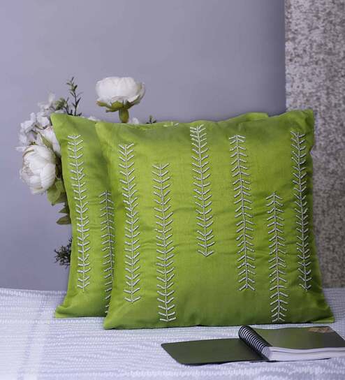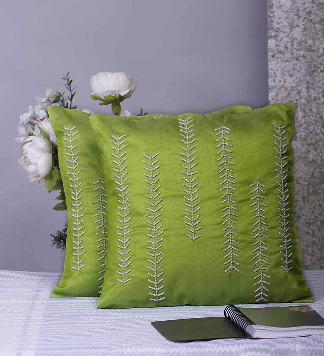 Green Embroidered ( Set of 2 ) Cushion covers 16x16 Inch Alina decor