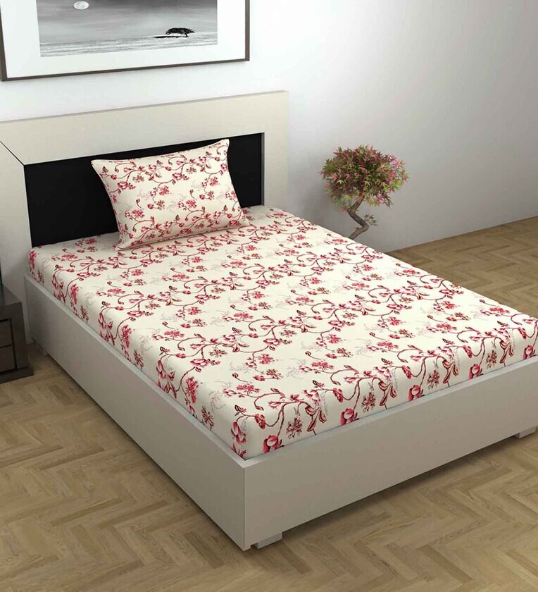The 144 TC 100% Cotton Single Bedsheet is soft and breathable, offering comfort for a good night's sleep. Made from premium cotton, this set includes a single bedsheet and a matching pillow cover, providing durability and a cozy touch to your bedroom decor.