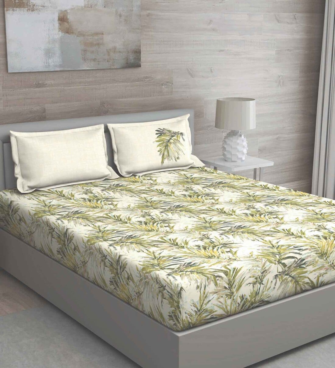 Green Floral 150 TC Cotton Queen Sized Bed Sheets with 2 Pillow Covers