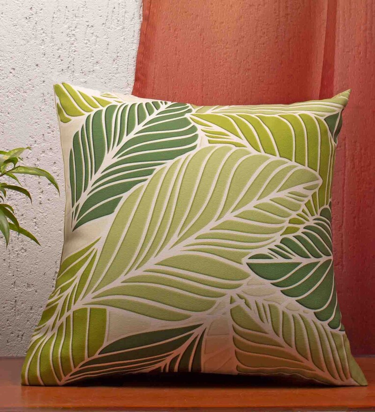 Quirky Trend is here and is going to stay. The expressive leaf pattern is rich in detail and comes alive in the bright shades of green. This cushion cover looks informal and restful on a hot summer afternoon. Easy to mix and match with other solid-coloured or patterned cushions.
