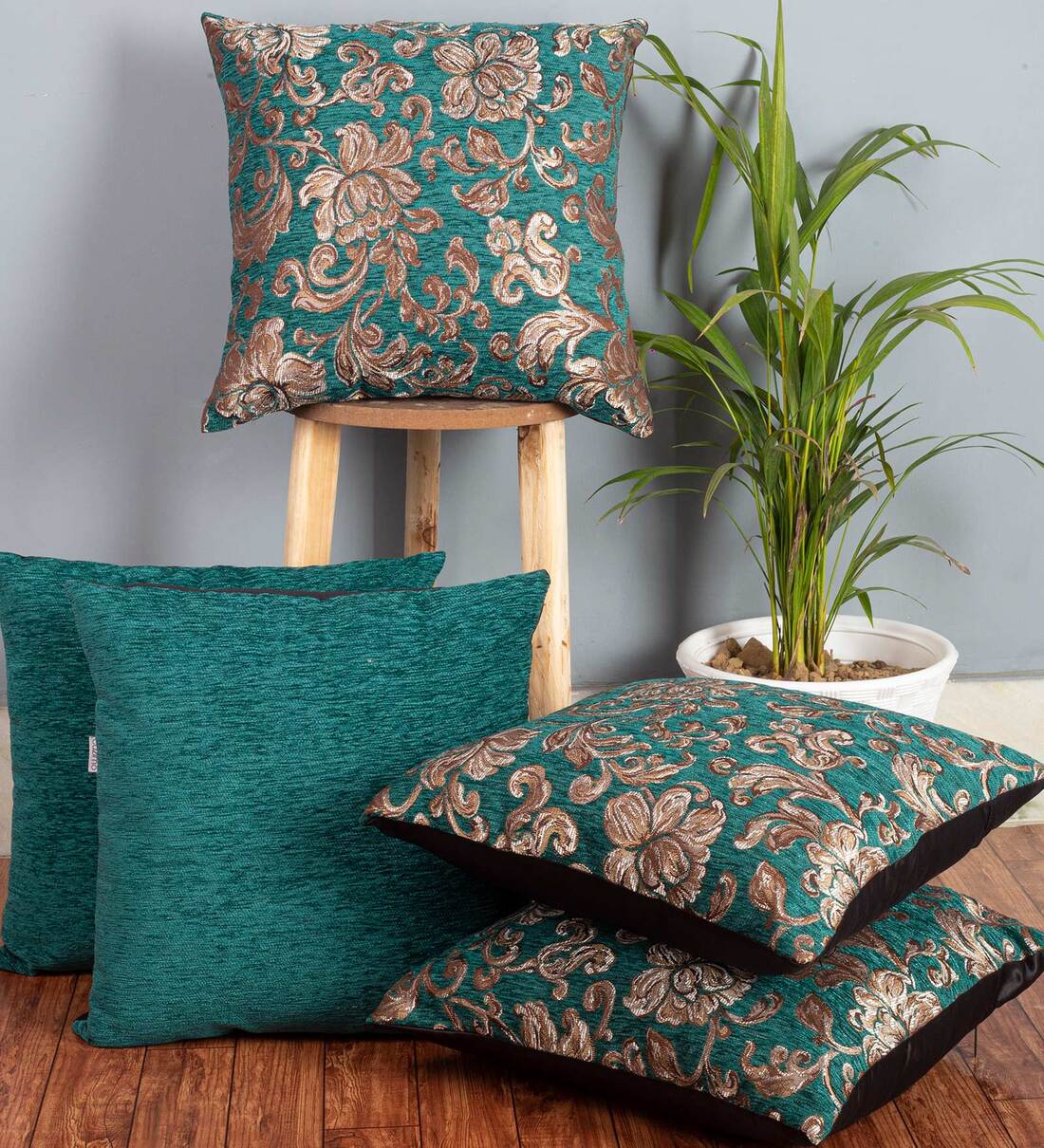 Green Floral Polyester 16 x 16 Inches Cushion Covers (Set of 5)