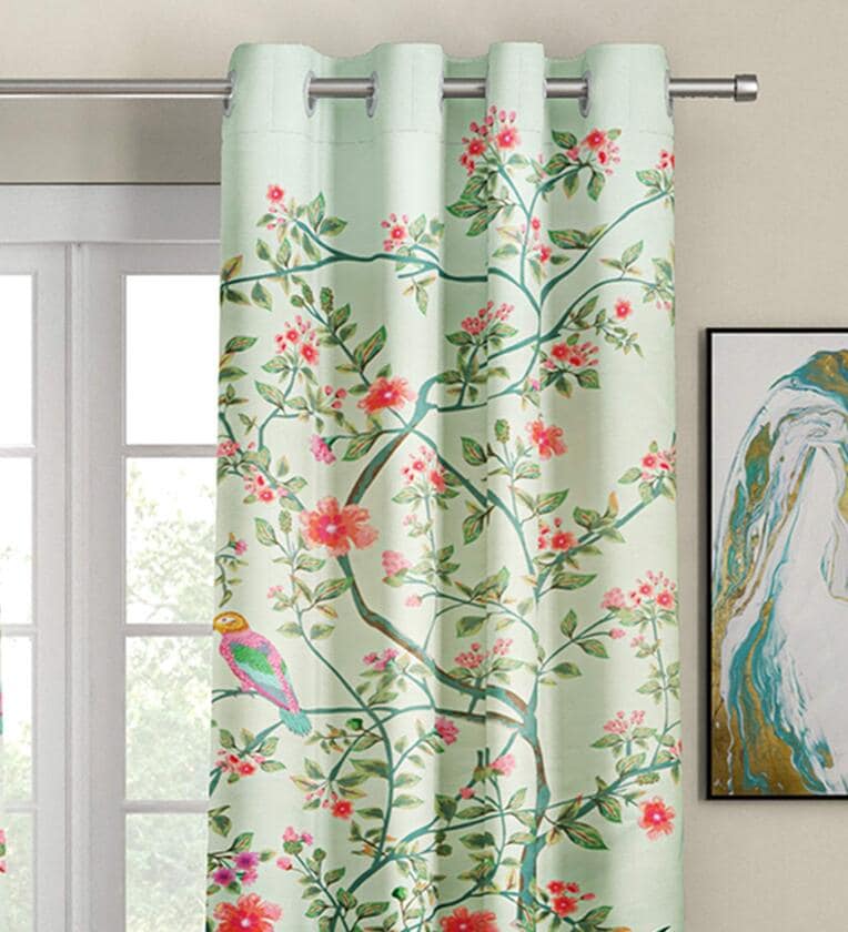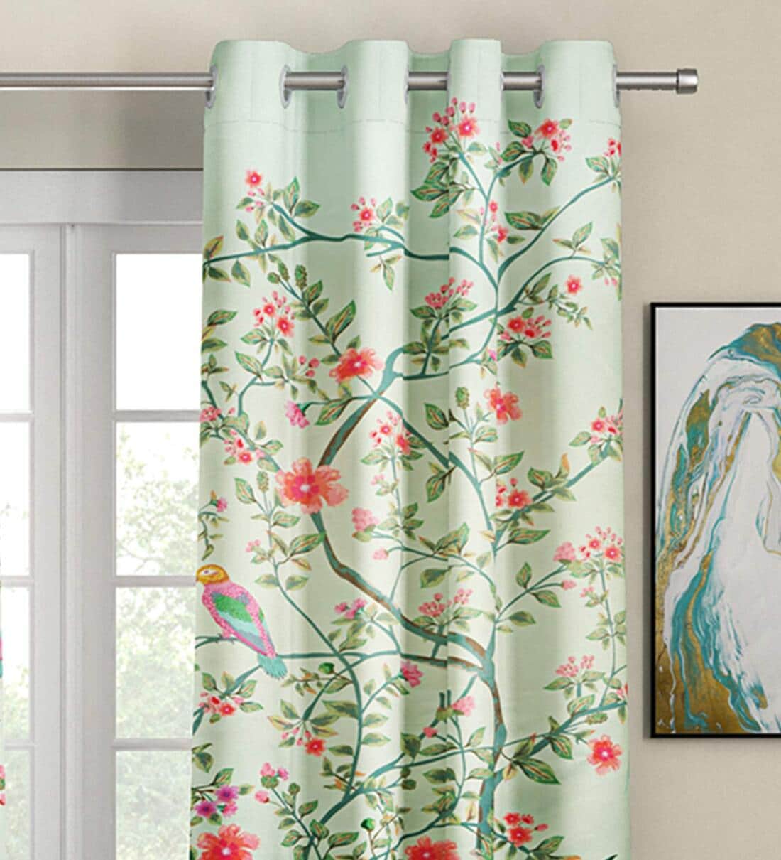 Green Floral Polyester 5 Ft Light Filtering Eyelet Window Curtains (Set of 2)