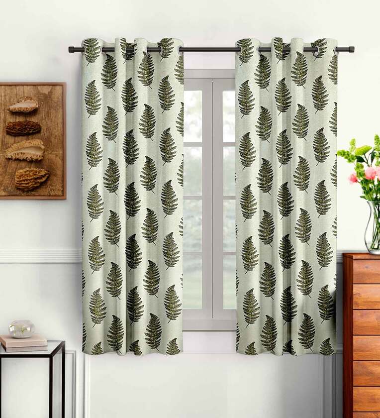 Green Floral Polyester 5 Ft Semisheer Eyelet Window Curtains (Set of 2)