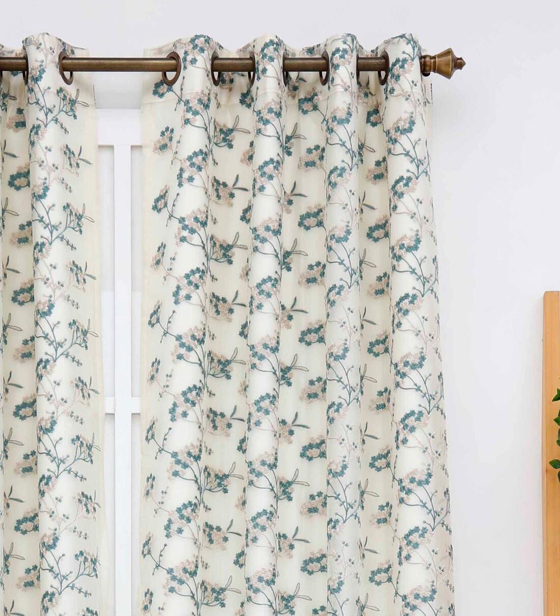 Green Floral Polyester 9 Ft Blackout Eyelet Door Curtain