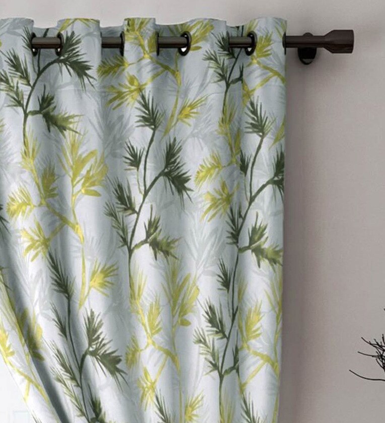Green Floral Silk 8 Ft Blackout Eyelet Door Curtain