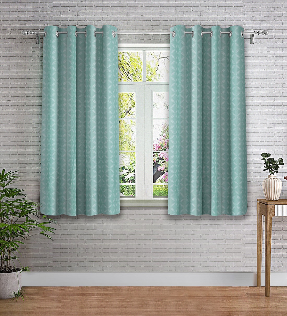 Green Geometric Polyester 5ft Semisheer Eyelet (Set Of 2)