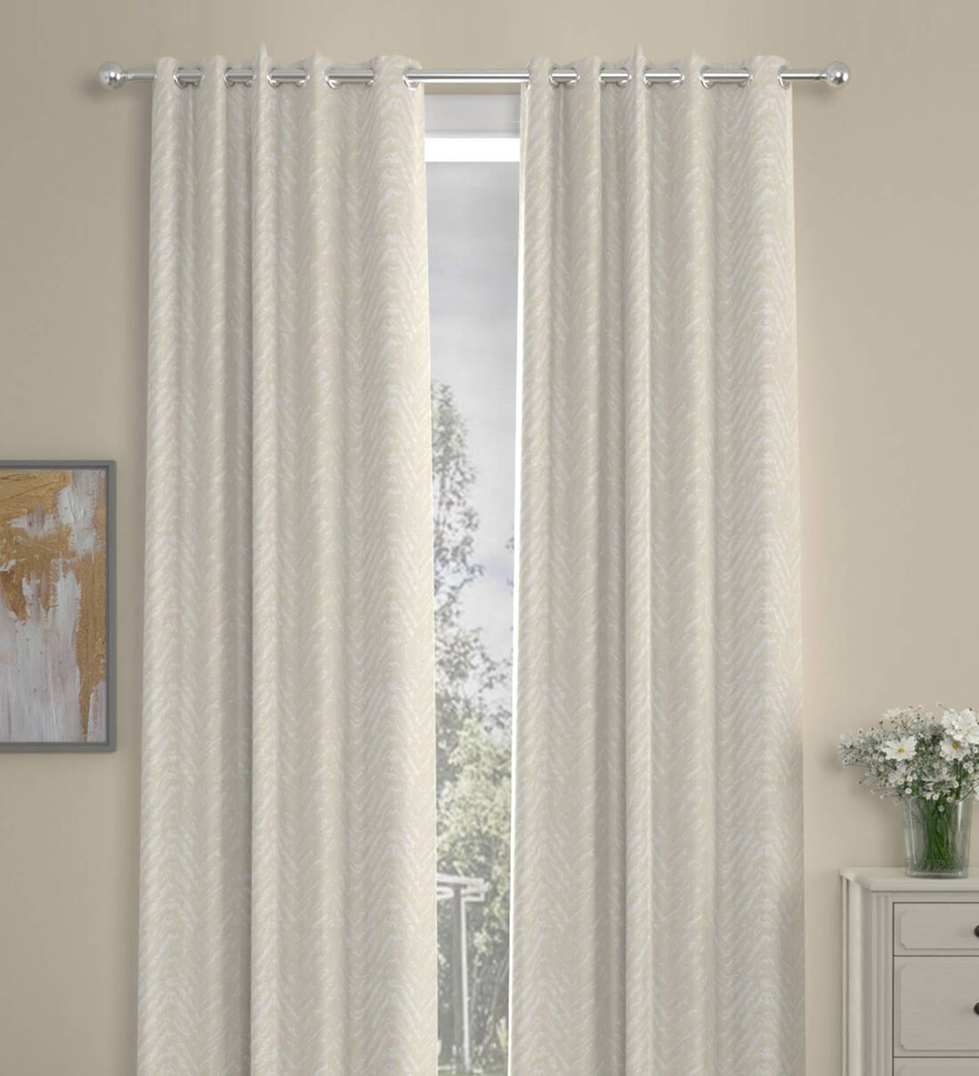 Green Geometric Polyester 9 Ft Semisheer Eyelet Door Curtains (Set of 2)