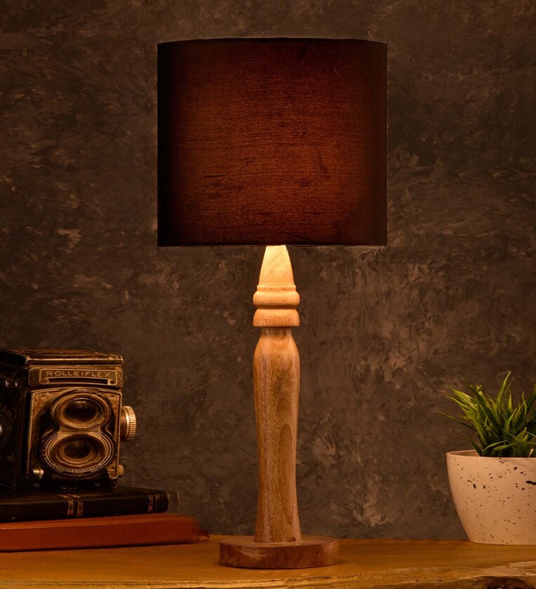 Green Girgit Round Brown Lamp With Black Cotton Shade