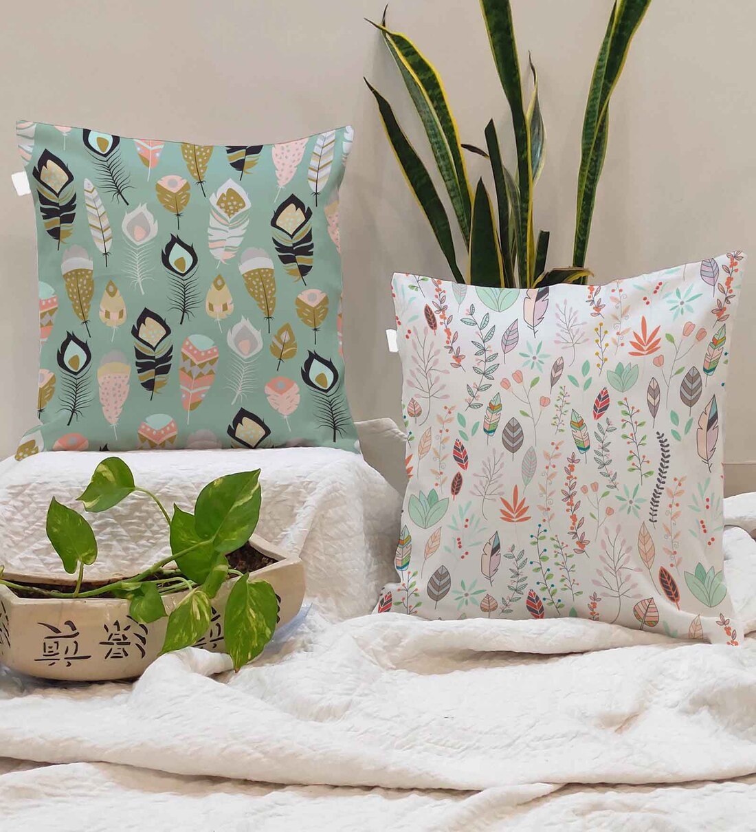 Green Jute Abstract 16x16 inches Cushion Covers (Pack of 2)