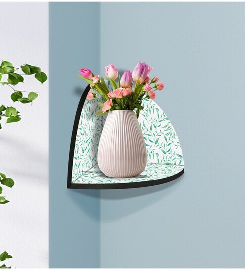 MDF corner with printed designs corner wall shelf for living room with matte finish for perfect home decor.