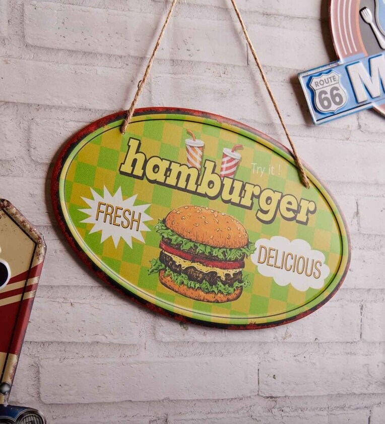 Green Metal Fresh & Delicious Hamburger Wall Hanging