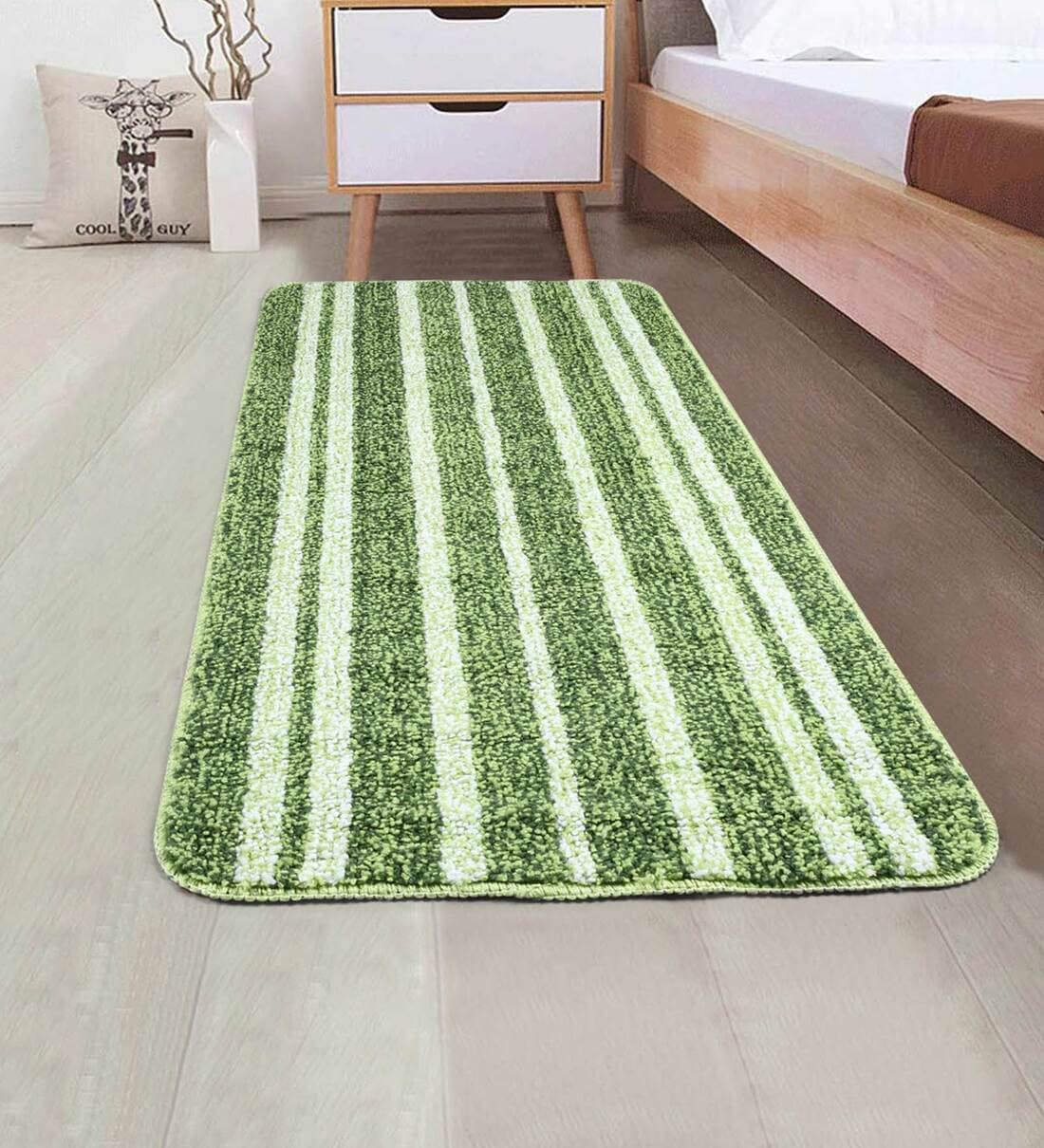 Green Microfibre 39 x 20 Inches Machine Made Floor Runner