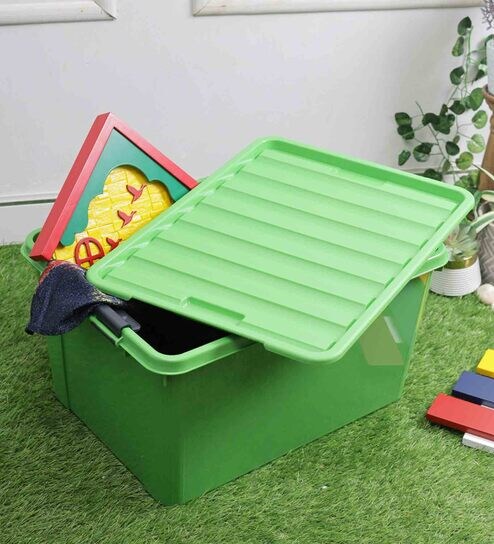 Green Plastic Inplus Easy Clip Storage Box 40Ltr Desk Organizers