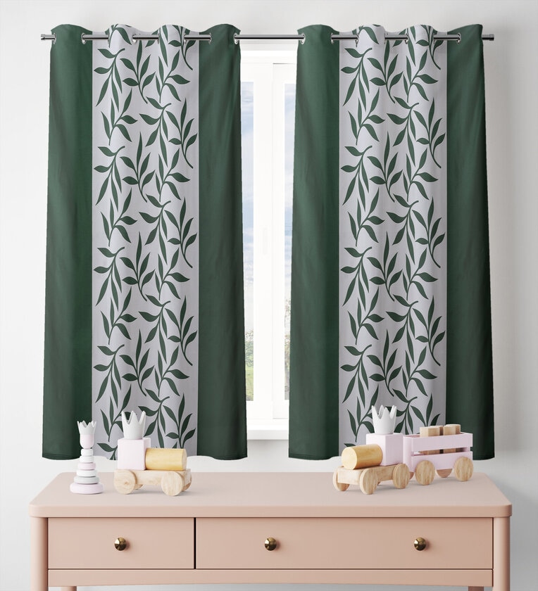 Green Polyester Leaf 5ft Blackout Eyelet Door Curtain (2 Pc)