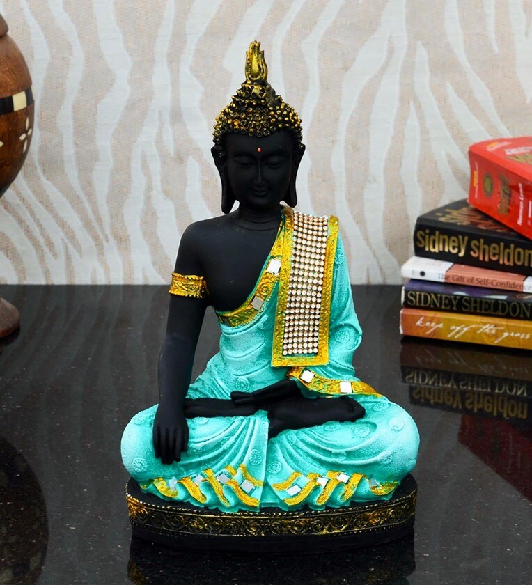 1 Polyresin Meditating Lord Buddha - Green