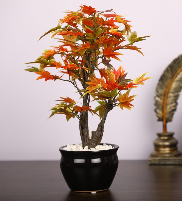 Green Artificial Maple Bonsai Plant with Ceramic Pot