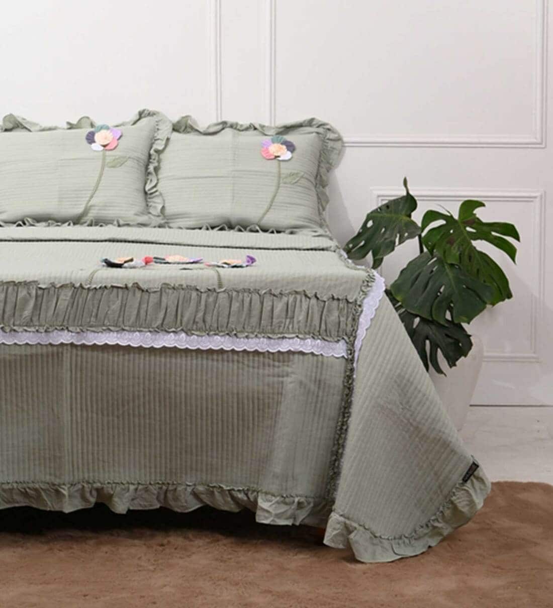 Green Solid 1000 TC Cotton King Sized Bed Sheets with 2 Pillow Covers