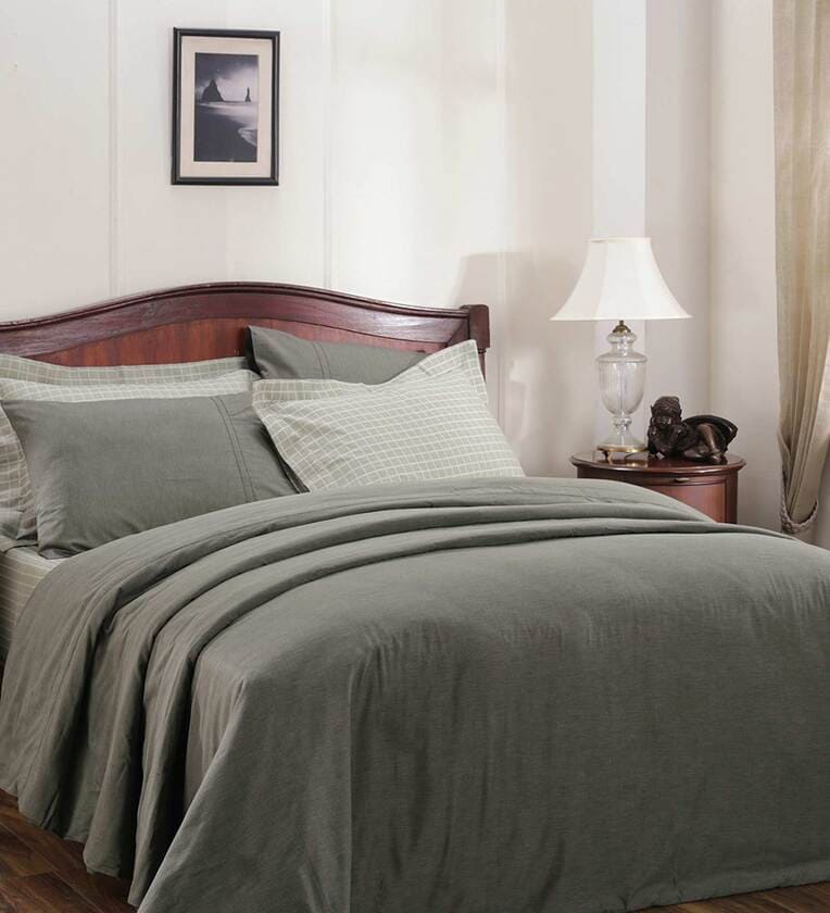 Green Solid 100% Cotton Double Bed Duvet Cover With 2 Pillow Covers