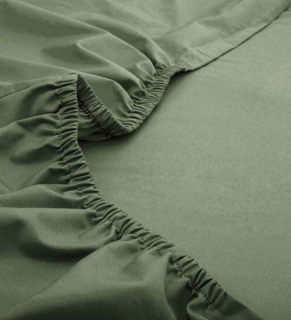 Green Solid 200 TC Cotton Double Bed Fitted Sheet with 2 Pillow Case 24 Collection
