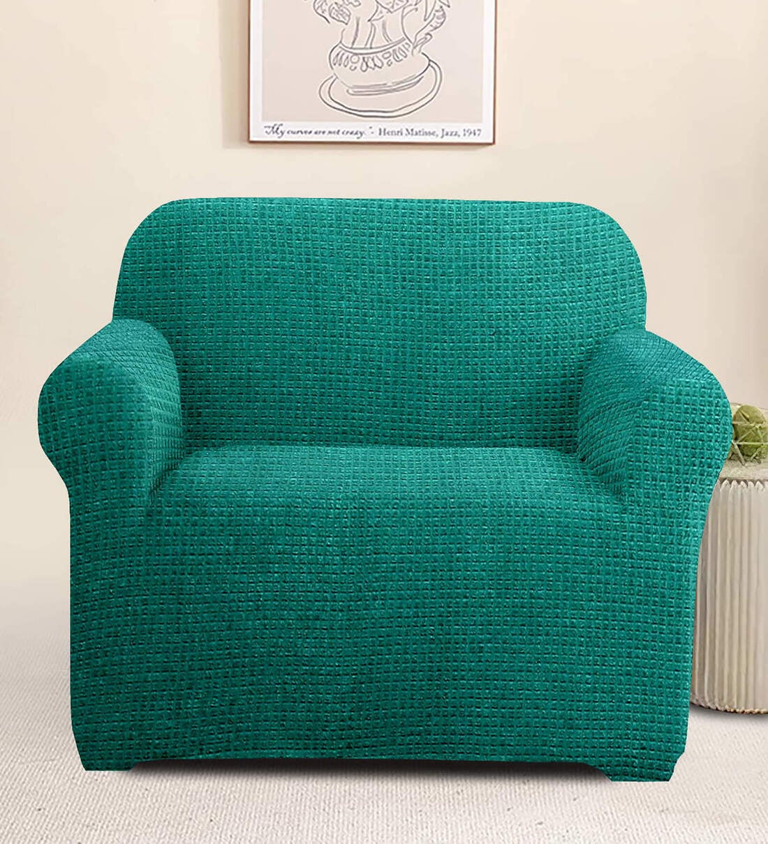 Green Solid Jacquard 1 Seater Stretchable Sofa Cover