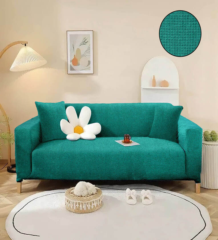 Green Solid Jacquard 3 Seater Stretchable Sofa Cover