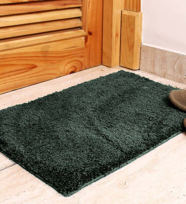 Green Solid Microfibre 24x16 Inches AntiSkid Bath Mat