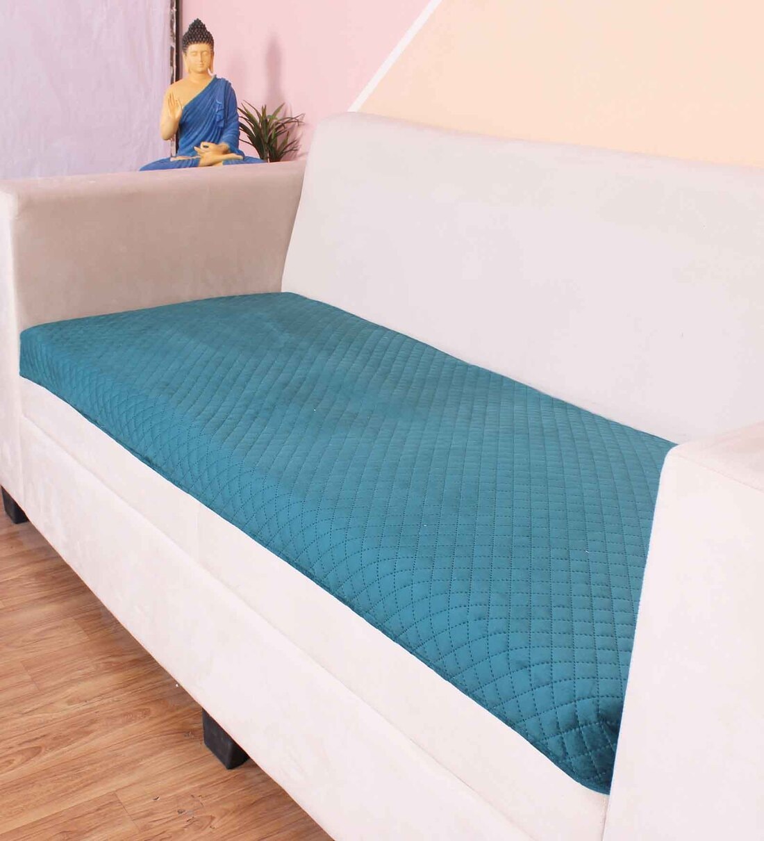 Green Solid Velvet 2 Seater Quilted Sofa Cover (Protector)