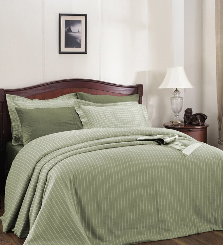Green Striped 100% Cotton Double Bed Duvet Cover With 2 Pillow Covers
