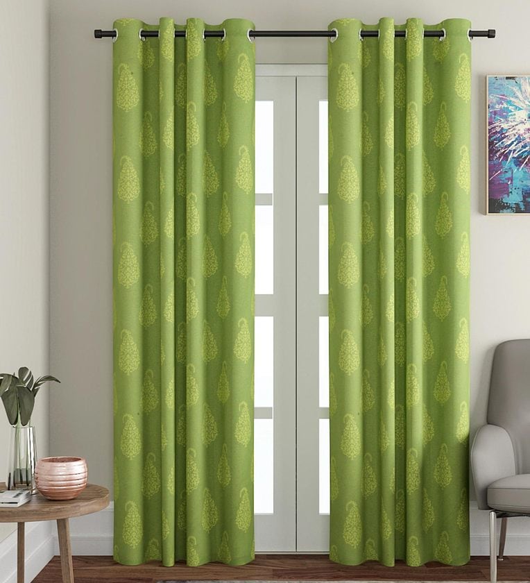 Green Traditional Cotton 7 Ft Light Filtering Eyelet Door Curtain