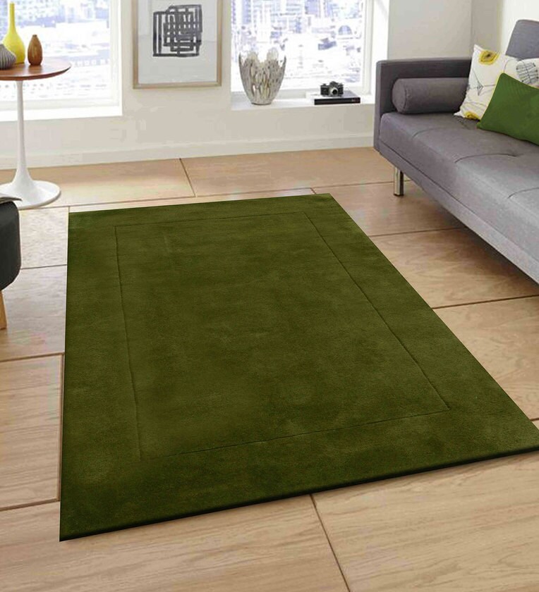 Green Wool Solid 3 x 5 Feet Hand Tufted Carpet