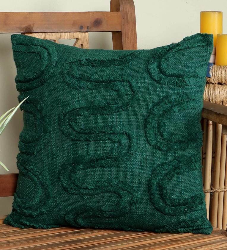 Green Woven Abstract Cotton 16 x 16 Inches Cushion Cover