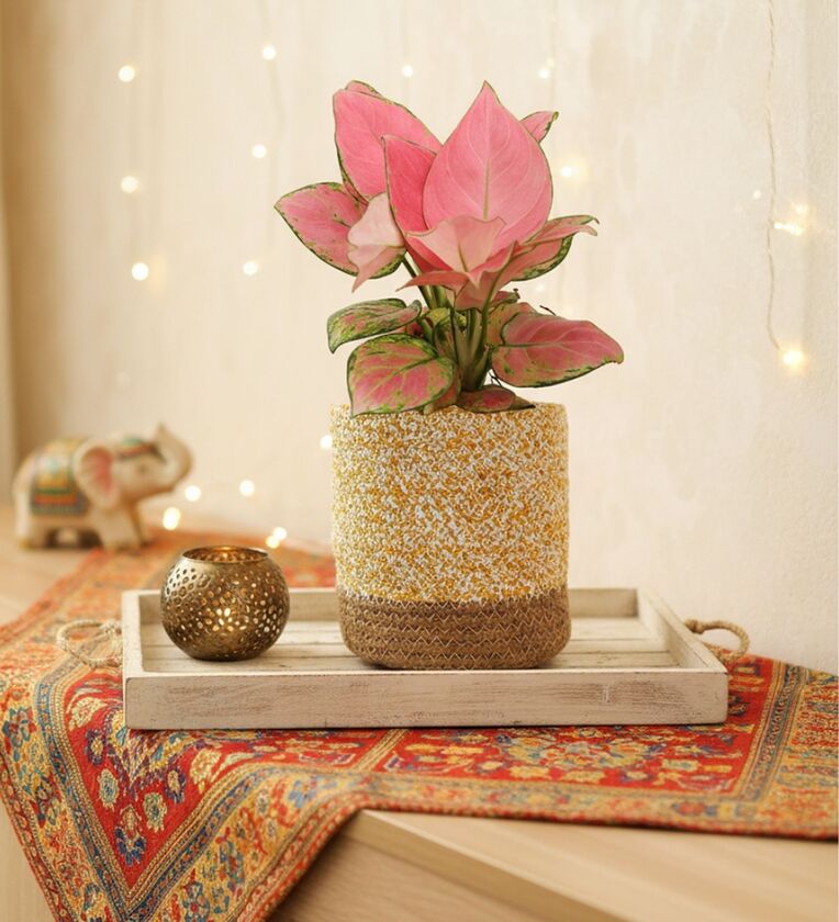 Greenkin Aglaonema Pink Plant in 6 inch Yellow Jute Planter Basket