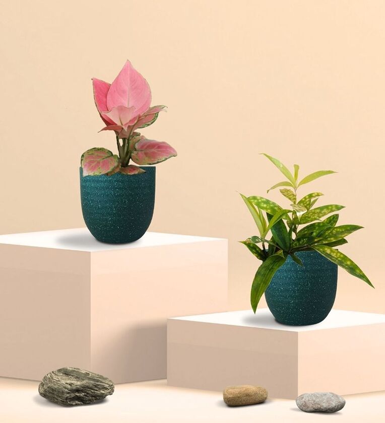 Greenkin Bamboo Gold Plant & Pink Plant in Eco Pot