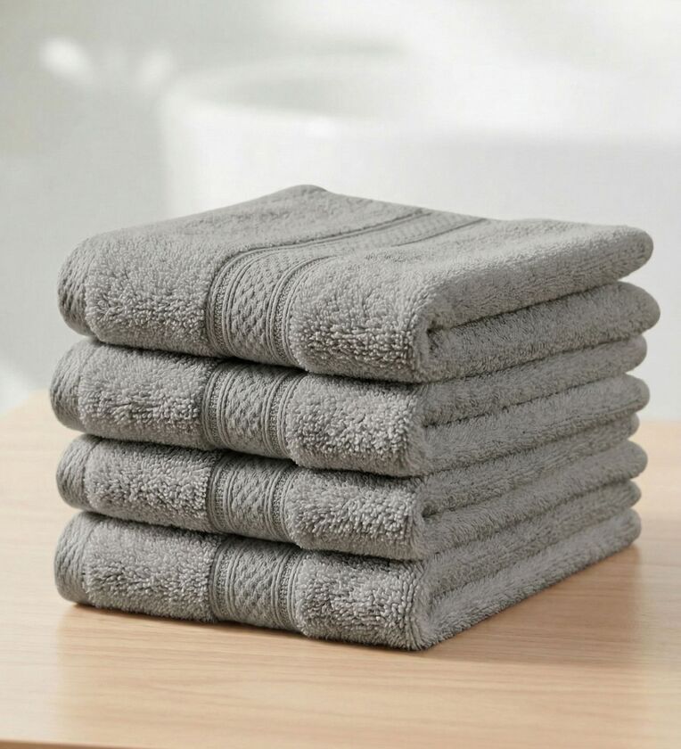 Grey 100% Cotton 600 Gsm Face Towel 4 Pc