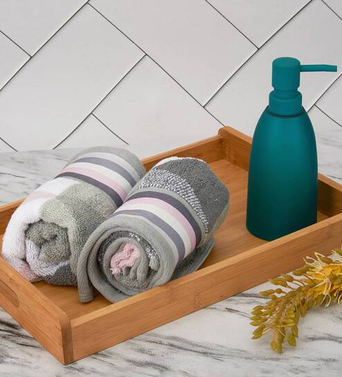Grey 100% Cotton Patterned 650 GSM 4 Pcs Hand Towels