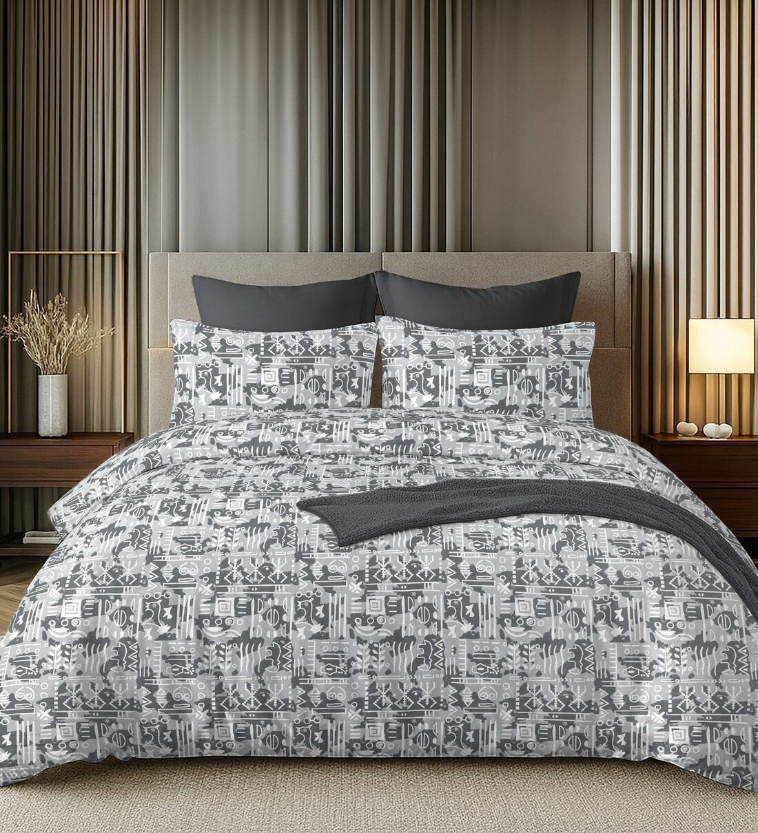 Grey 144TC Cotton Flat Super King Bedsheet with 2 Pillow Covers