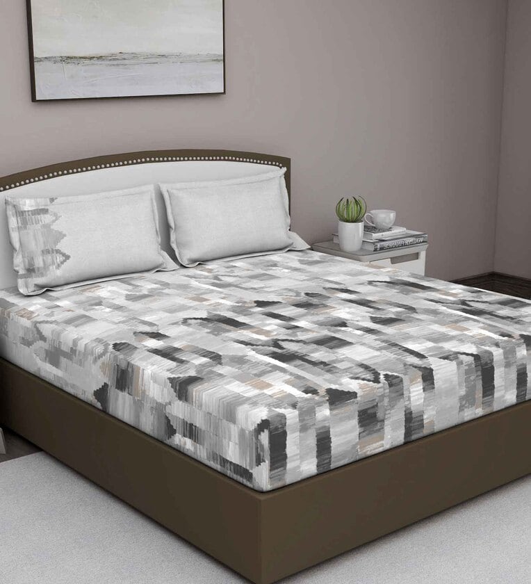 Grey Abstract 180 TC Cotton King Sized Bed Sheets with 2 Pillow Covers