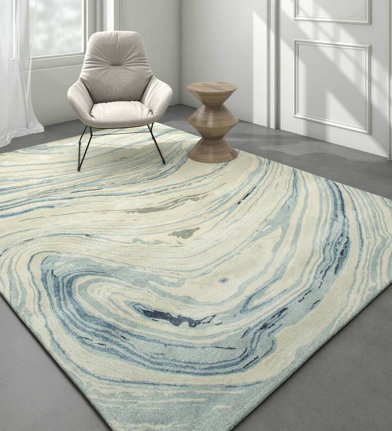 Grey Abstract Wool And Viscose 5 ft x 7 ft Hand Tufted Carpet