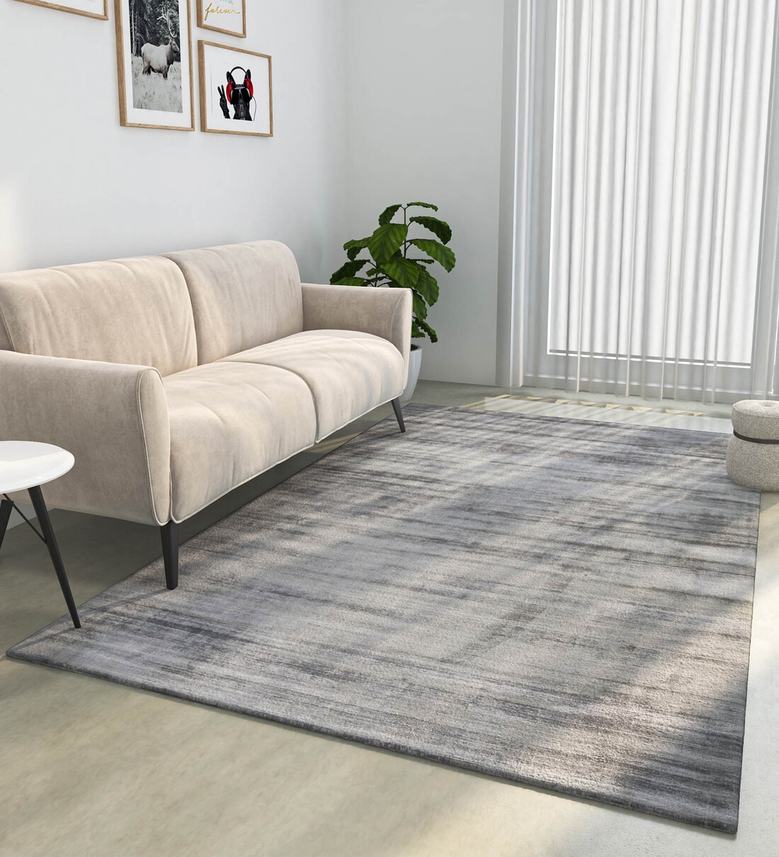 Grey And Black Viscose Plain Solids 4 ft x 6 ft Hand Woven Carpet
