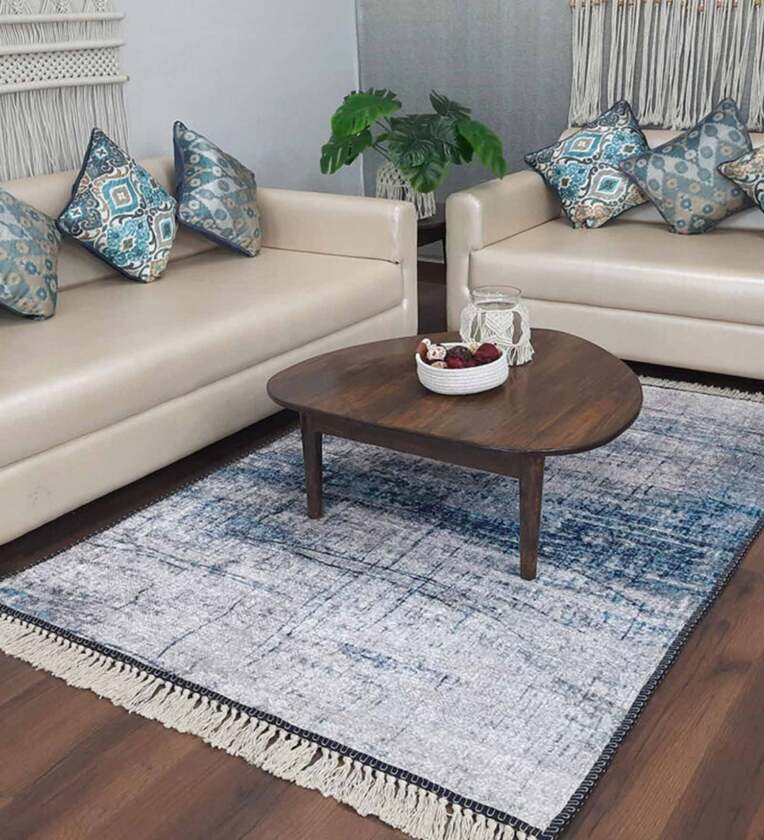 Grey & Blue Faux Silk Abstract 3 x 5 Feet Hand Woven Carpet -Avioni Collection