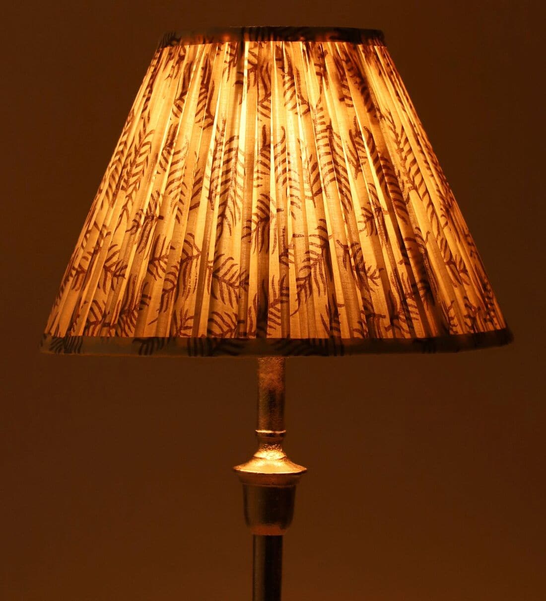 A softback printed cotton shade handmade by incredibly skilled craftswoman. This is a 30cm size (bottom diameter) lampshade which is designed to work with a British (B22) or European (E27/E14) bulb holder. We also provide a reducer ring that allows shades to sit comfortably on a B22 holder. If it is E27/E14, simply push out the reducer. This lampshade can be used as pendant/hanging or on top of table lamps/floor lamps. Our shades are completely handmade and yet of top quality, eco-friendly, and of course 100% made in India. Dimensions (cms) : Top - 14, Bottom- 30, Height - 18.2